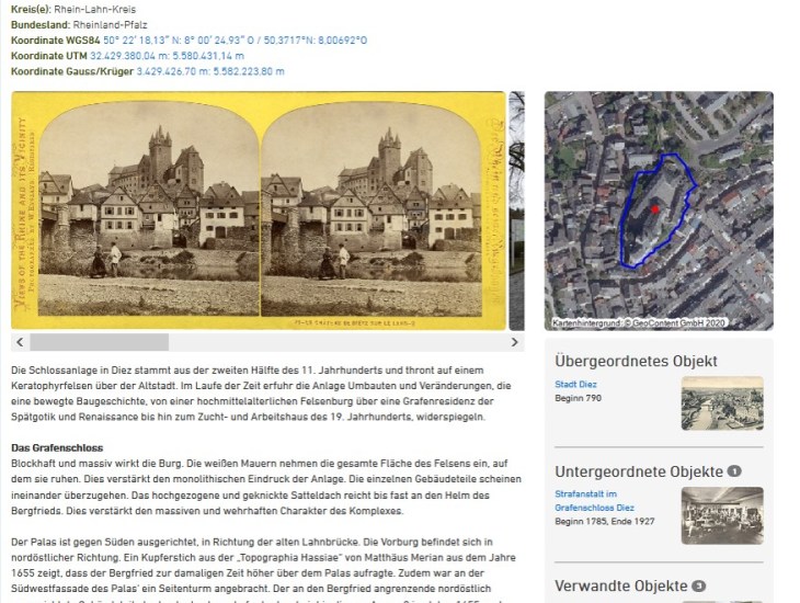 In der rechten Spalte gibt es ab März die Rubrik „Objekt des Monats“. Hier werden wir im monatlichen Wechsel Objekte des kulturellen Erbes vorstellen, die im Rahmen des Projekts digital erfasst wurden. Den Auftakt macht das Grafenschloss Diez, Teil des Projekts zum kulturellen Erbe von Diez an der Lahn als Oranierstadt.