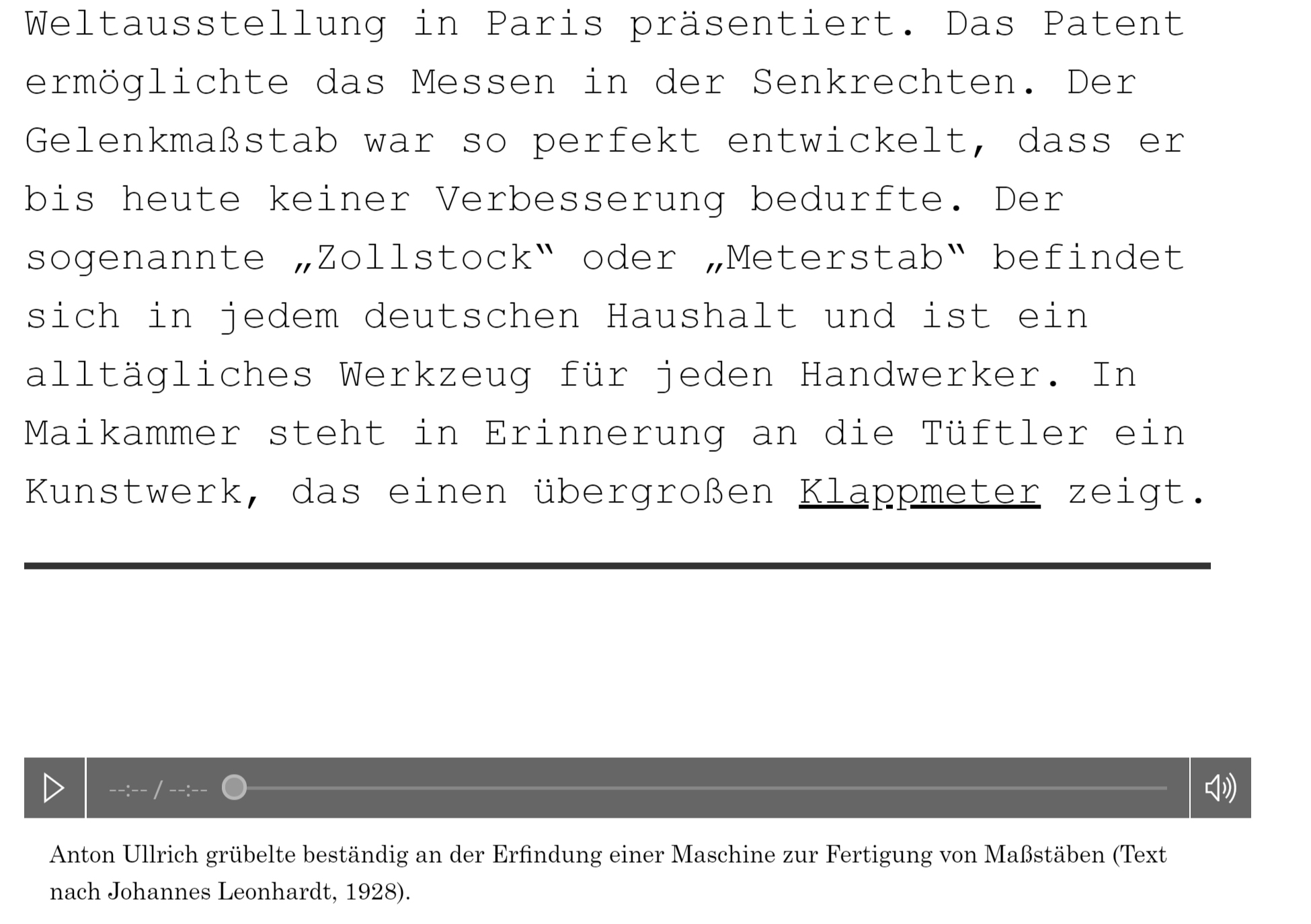 - Durch einfaches Herunterscrollen oder automatisches Abspielen kann man sich die Geschichte Baustein für Baustein anschauen und anhören.