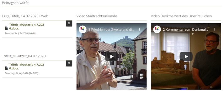 - Textentwürfe und Video-Rohschnitte werden dort gesammelt und diskutiert – hier von Team Annweiler.