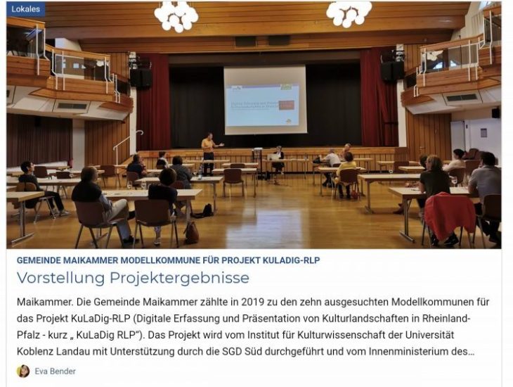 Die Teilprojekte in den 2019 betreuten Kommunen sind inzwischen weitgehend abgeschlossen, nun geht es an die In-Wert-Setzung, sprich das Verfügbarmachen der in KuLaDig präsentierten mutimedialen Informationen für die Öffentlichkeit. Dies geschieht genauso vielfältig, wie die Projekte selbst gestaltet waren. In Bobenthal und Dörrebach zum Beispiel sind digitale „KuLaTouren“ angelegt worden, die man per Smartphone vor Ort nutzen kann, um die Radtour entlang der Wieslauter oder den Ortsrundgang mit kulturhistorischen Informationen anzureichern. Diez, Deidesheim und Saarburg laden ebenfalls bereits digital zu spannenden Themenrundgängen zum Erbe der Nassauer, zur Weinkultur oder zur Nutzung der Wasserkraft ein. Die Verbandsgemeinde Kelberg erstellt gerade die Stationen des „Kamillen-Traud-Erlebniswegs“, den man in KuLaDig bereits „abgehen“ kann. In Zweibrücken erhält man beim Rundgang durch das Landgestüt zahlreiche Informationen per Video und Text. In Kamp-Bornhofen wird momentan das Schiffer- und Flößermuseum im virtuellen Rundgang begehbar gemacht. Manches bleibt in nächster Zeit noch zu tun, etwa das Anbringen von Informationstafeln und Schildern mit QR-Codes für die Aktivierung der KuLaDig-Beiträge.