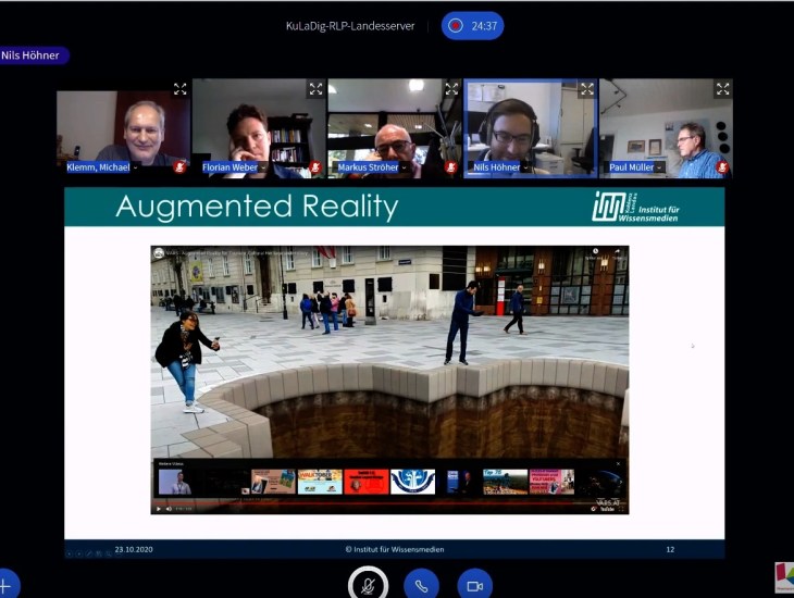 Um in das Thema einzuführen und erste Anregungen zu geben, fand in der letzten Woche unser zweites Webinar zum Thema „AR/VR: Virtuelle Rundgänge in Museen oder Orten / Die Plattform digiCULT“ statt. Nils Höhner vom Institut für Wissensmedien (IWM) der Universität Koblenz-Landau erläuterte den Unterschied von Augmented und Virtual Reality und präsentierte anhand ausgesuchter Beispiele, wie diese Anwendungen im Kulturbereich genutzt werden können.
