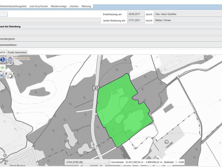 In das Kartenwerk muss nun manuell das Objekt eingezeichnet werden. Diese Zeichnung wird später am Objektbeitrag als Geometrie angezeigt.