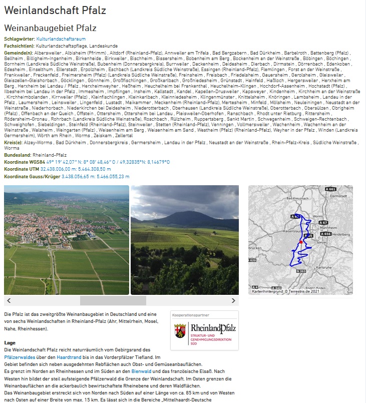Beitrag zur Weinlandschaft Pfalz in KuLaDig