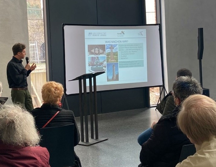 Aus diesem Grund wurden nach einführenden Worten von Bürgermeister Christoph Mohr und der Leiterin des Rheinischen Eisenkunstgussmuseums, Barbara Friedhofen, den Besucher:innen auch in zwei kurzen Vorträgen Einblicke in die Arbeit des Landesprojekts durch das KuLaDig-RLP-Team sowie in die Arbeit des Teilprojekts Bendorf von Studierenden gegeben.