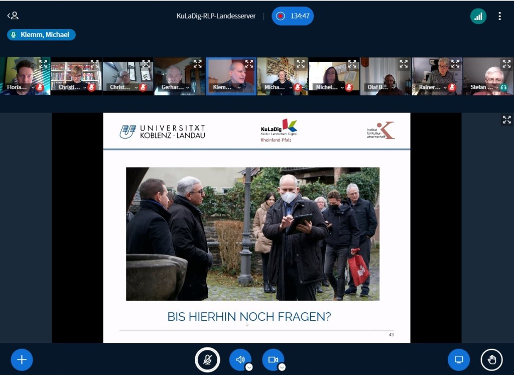 Der Startschuss in die neue Projektphase fiel bereits in der letzten Woche. Im Rahmen einer virtuellen Informationsveranstaltung kamen die kommunalen Projektteams der neuen Modellkommunen mit dem Projektteam von KuLaDig-RLP zusammen, um die wichtigsten Fragen zum Informationssystem KuLaDig und zum Verlauf der Teilprojekte zu besprechen.