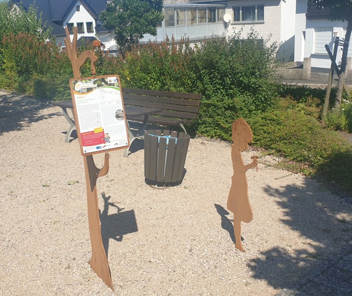 Das Leben der Gertrud Feiler (ca. 1884-1964), genannt Kamillen-Traud, wurde im Jahr 2008 von der Schriftstellerin Ute Bales in ihrem biografischen Roman „Kamillenblumen“ erzählt. Durch den Roman wurde die bis dahin fast vergessene historische Person sehr schnell zu einer Identifikationsfigur für die Kelberger Region und ihre Bewohner:innen, lässt sich anhand des Schicksals dieser Frau doch das entbehrungsreiche Leben in der Vulkaneifel zwischen 1880 und 1960 nachempfinden. Das zunehmende öffentliche Interesse führte zum Entschluss, das Leben der Traud an den Orten selber sichtbar zu machen. Mit dieser Idee nahm die Verbandsgemeinde Kelberg im Jahr 2019 als Modellkommune am Landesprojekt teil. Sieben KuLaDig-Beiträge wurden im Rahmen dieses Teilprojekts erstellt. Zugleich wurden dazu durch Andrea Meyfarth-Staub von der Tourist-Information künstlerisch gestaltete Stationen in den Gemeinden Kolverath und Sassen konzipiert und als Themenrundweg „Spuren der Kamillen-Traud“ umgesetzt (von der Eröffnung haben wir vor kurzem berichtet), als Ergänzung der bereits bestehenden Themenrundwege der Geschichtsstraße um den Hochkelberg.