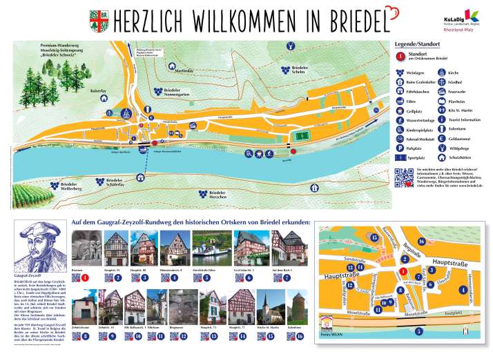 Mit der Freigabe der KuLaDig-Objekte wurde im Ort selbst die „Gaugraf-Zeyzolf-Runde“ umgesetzt. Dieser Rundweg, bestehend aus 16 Stationen im Briedeler Ortskern, wird an zentralen Stellen mit großen Schildern beworben, auf denen die Routenführung in einer Karte angezeigt und alle Objekte mit Bild, Kurztext und QR-Code aufgelistet werden. Auch an den Objekten selbst sind kleine Schilder angebracht, die den Namen des Objekts und den QR-Code führen. Zusätzlich wird die Gaugraf-Zeyzolf-Runde als KuLaTour in der KuLaDig-App angeboten. Auch über die Gemeindewebseite kann man auf die Daten zugreifen.