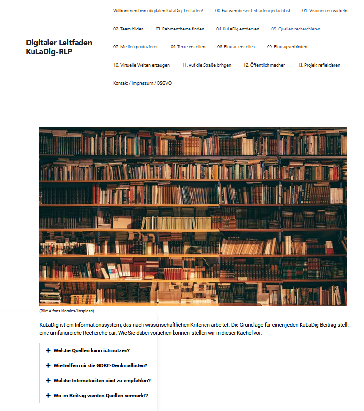 Eins der wesentlichen Ziele, die wir uns für die erste Projektphase (2019-2021) gesetzt haben, war die Erstellung eines digitalen Leitfadens, durch den Kommunen und andere Interessierte auch ohne Unterstützung des Landesprojekts mit KuLaDig arbeiten können sollen. Dieser ist nun online und erreichbar unter leitfaden-kuladigrlp.de.