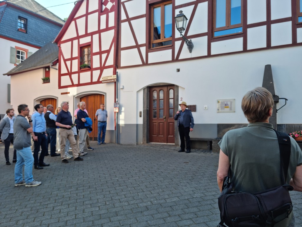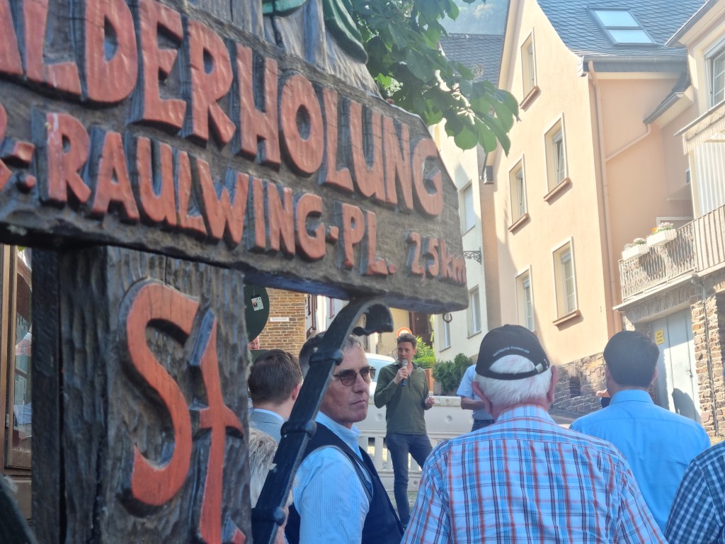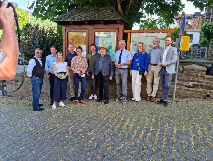 In einem kurzen Rundgang führte Gerhard Schommers, der die KuLaDig-Aktivitäten im Ort ehrenamtlich koordiniert und umgesetzt hatte, zu ausgewählten Stationen. Für die 19 Objektbeiträge, die sich unter dem Ortsbeitrag versammeln, hatte Schommers Texte und Bilder produziert. Unterstützt wurde Schommers durch Matthias Dreyer und seit 2022 durch das KuLaDig-Kompetenzzentrum an der SGD Süd.
