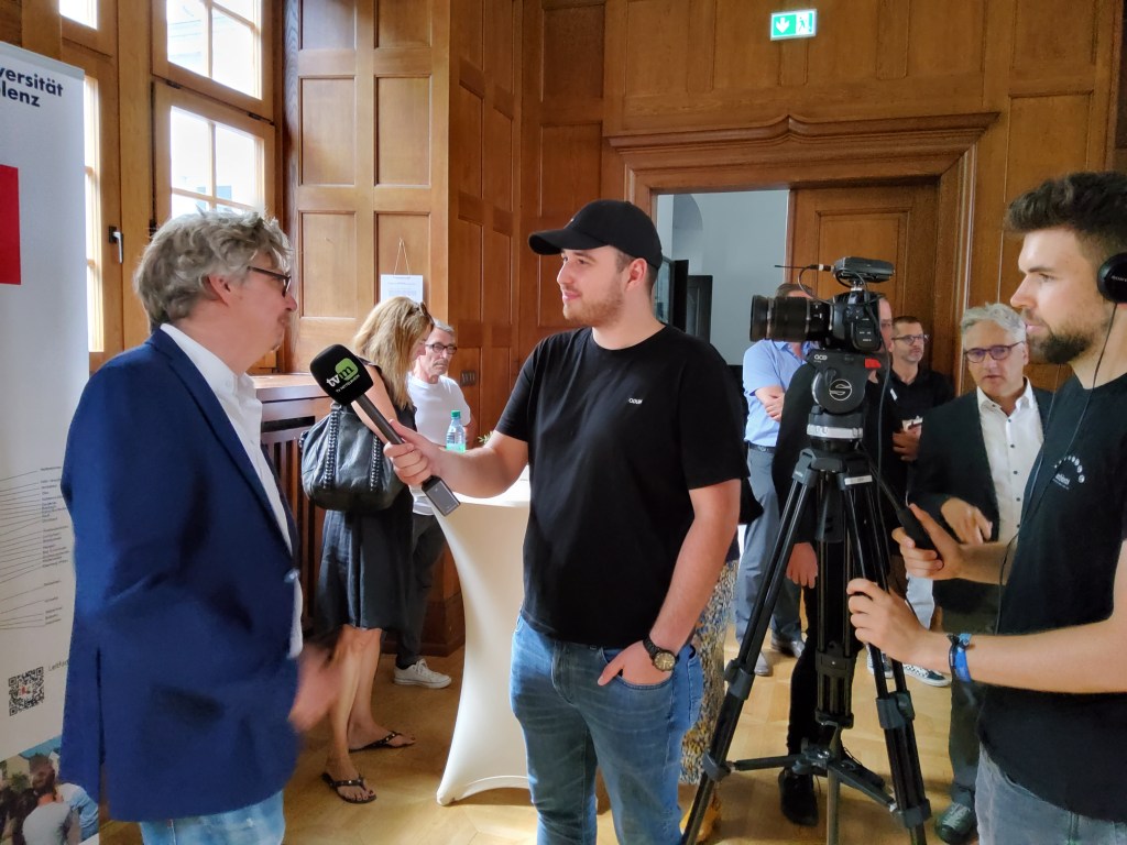 Florian Weber erläuterte die Beteiligung des Landesprojekts KuLaDig-RLP anhand des KuLaDig-Beitrags „Berghotel Rittersturz“, bevor Stefan Meier seine multimediale Story vorstellte. In einer Fragerunde konnten Schüler:innen zweier Koblenzer Gymnasien den anwesenden Expert:innen – u.a. neben dem Landtagspräsidenten und der Kulturdezernentin auch Prof. Dr. Michael Hollmann, Präsident des Bundesarchives, und Johannes Klomann von der Landeszentrale für politische Bildung – Fragen stellen oder eigene Sichtweisen formulieren.