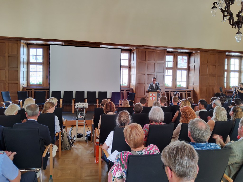 Am 17. Juli wurde im vollbesetzten Historischen Rathaussaal der Stadt Koblenz die Ergebnisse der Arbeitsgruppe der Öffentlichkeit vorgestellt – in Anwesenheit des Landtagspräsidenten, Hendrik Hering, der in seinem Grußwort nochmals die Bedeutung der Erinnerung an solche Orte und Ereignisse der Demokratiegeschichte hervorhob.