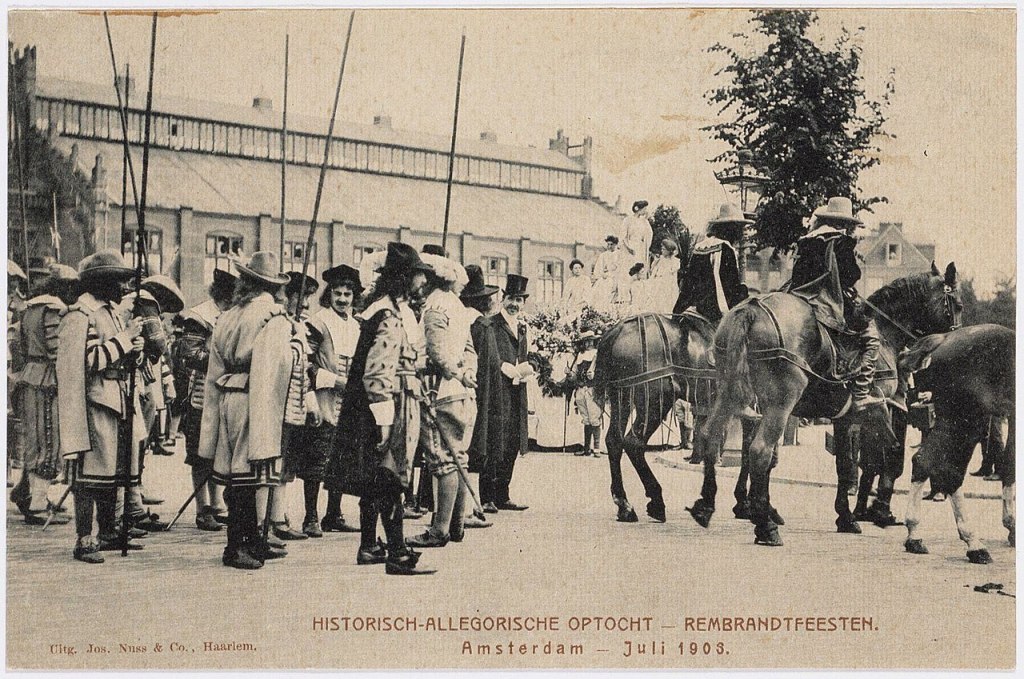 Historisches Beispiel von Reenactment: Auf dem Rembrandtfest in Amsterdam im Juli 1903 wurden Schützenumzüge nachgestellt, um die Zeit der „Nachtwache“ für die Menschen greifbarer zu machen (Bild: gemeinfrei)