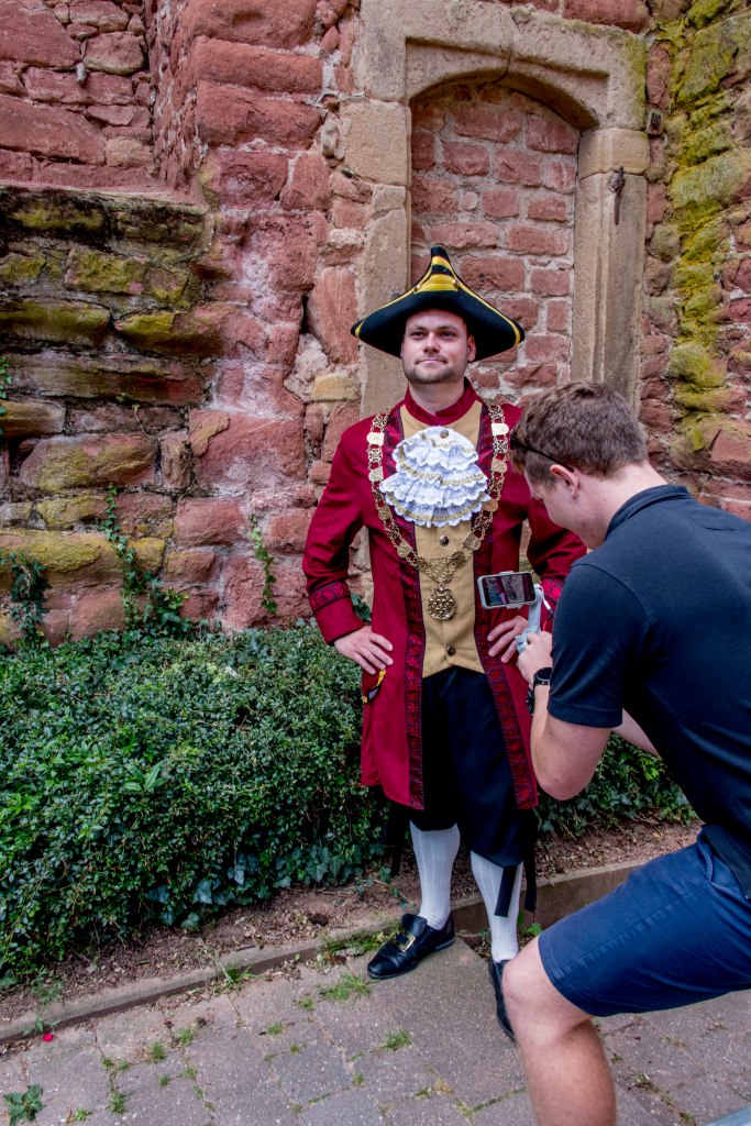 Ein schönes Beispiel bilden die Videoclips, die wir 2022 im Teilprojekt Bretzenheim in Gemeinschaftsarbeit mit dem kommunalen Team und Studierenden unserer Universität umgesetzt haben. Vier historische Personen werden dort in Szene gesetzt, um ihre Geschichte(n) zu erzählen: Der letzte Eremit von Bretzenheim Vater Abraham, gespielt von Ortsbürgermeister Olaf Budde, stellt die Felseneremitage vor. Björn Ritter spielt den Amtsmann Schweickhardt an der Villa Puricelli-Plettenberg, den Grafen von Velen am Schloss Bretzenheim und auch den Grafen Emich von Daun, an der Ruine des alten Schlosses.