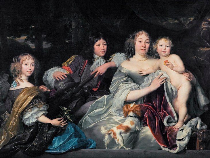 Fürstin Albertine Agnes und ihre beiden Töchter Amalia und Sophia Hedwig blicken die Betrachter:innen unverwandt an. Hendrik Casimir (später II.), der zukünftige Fürst, verwehrt uns die Gnade seines Blickes. Was wollen uns diese Personen sagen? Der Blick der Fürstin ist nicht ohne Stolz: Ich habe meine Pflicht erfüllt, habe die mir zugedachte Aufgabe klaglos erledigt und Kinder – ach, viel wichtiger – einen männlichen Erben geboren. Und doch schwingt ein wenig Leid mit, das auch in der Ikonografie des Bildes Unterstützung findet. Nicht umsonst spielt das jüngste Kind auf eine bestimmte Art von Christusbild an, in der uns der „Gottessohn“ als nacktes Kind einen Apfel, Evas Apfel, präsentiert und somit auf die durch den Kreuzestod getilgte Erbsünde verweist. Und wie Maria wird auch die Fürstin das ihr zugedachte Los erdulden und den Sohn verlieren. Wird der Sohn erst Fürst, wird sie den Witwensitz aufsuchen (müssen) und darf nicht mehr Teil des Fürstenhofes sein. Der geschlossene Vorhang hinter ihr verdeutlicht es bereits: ihr Lebensabend wird prächtig, wenn auch räumlich eingeschränkt, für sie ist das Spiel vorbei.