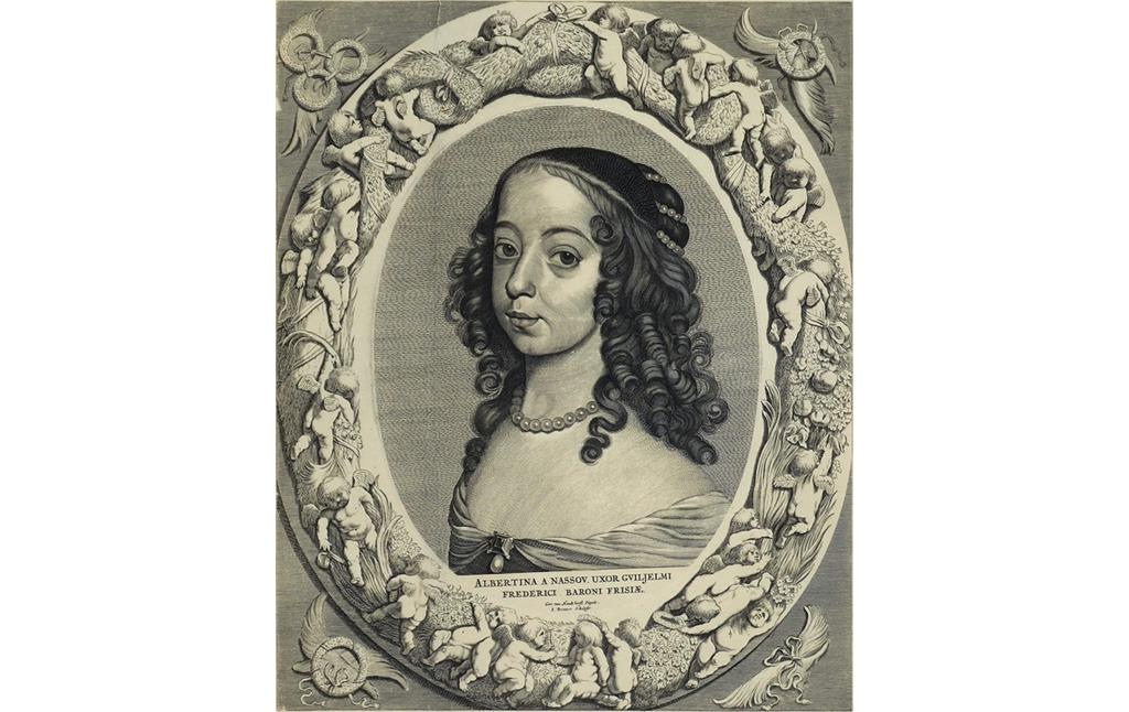 Kupferstich der Albertine Agnes Fürstin von Nassau-Diez (1634-1696) von Jan Brouwer, nach einem Ölgemälde Gerrit van Honthorsts, um 1651