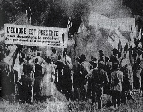 Unter den Anwesenden war auch André Philip (1902-1970), französischer Minister für Wirtschaft und Finanzen (1946-1946 und 1946-1947) und Vorgänger sowie Nachfolger von Robert Schuman (1886-1963). Philip hielt eine Rede, in der er unter anderem „den Idealismus der anwesenden jungen Europäer“ lobte. Auch Michel Mouskhély und Marcel Mille hielten eine Rede. Eine Proklamation mit zehn Forderungen wurde verlesen in der es beispielsweise hieß: „Wir verlangen das europäische Bürgerrecht“ und „Wir verlangen die Bildung eines europäischen Parlaments und einer europäischen Regierung.“ Dann verließen die Aktivisten den Ort des Geschehens, noch bevor die Grenzverstärkung eintraf.