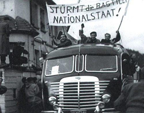 Am 6. August 1950 trauten die diensthabenden Zollbeamten im Zollhaus am Sankt Germanshof, im kleinen südpfälzischen Ort Bobenthal, ihren Augen nicht. Überraschend traten sowohl von deutscher, als auch von französischer Seite massenhaft junge Menschen an die Zollstation. Der ersten Schrecken wich der Ratlosigkeit, denn gefährlich sahen die Herankommenden nicht aus, eher wie Studierende. Auch Reporter waren anwesend und verfolgten begeistert die Aktion. Wie aber sollten die Beamten reagieren? Wie sollte die Ordnung aufrechterhalten und der unerlaubte Grenzübergang verhindert werden? Die überforderten Beamten beließen es dabei den Vorgesetzten Meldung zu machen und Verstärkung anzufordern, ansonsten waren sie sich der Sinnlosigkeit jedes restriktiven Eingreifens bewusst. „L’Europe est presente“, „Wir fordern Europa“ und „Stürmt die Bastille Nationalstaat“ stand auf den Plakaten der Aktivisten und – wenn auch friedlich, doch aber mit einigem Enthusiasmus – bemächtigten sie sich des Zollhauses und des Schlagbaumes.