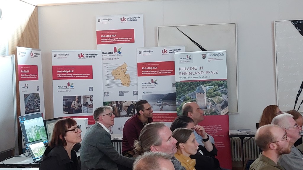 Ob Dinosaurier, die durch die Innenstadt von Neuwied laufen, abenteuerliche Burgengänge, die mittels VR-Maske virtuell erschlossen werden können oder virtuelle „Fahrstuhlfahrten“ in mittelalterliche Klosterlandschaften… Rheinland-Pfalz hat einiges an innovativen Formaten der digitalen Wissensvermittlung zu bieten und diese Vielfalt wurde in dieser Woche in Oberwesel auf beeindruckende Weise deutlich. Acht verschiedene Akteure präsentierten am Mittwoch im Kulturhaus in Oberwesel ihre digitalen Angebote – und KuLaDig-RLP (Landesprojekt und KuLaDig-Kompetenzzentrum) sowie unserer Kooperationsprojekt „Mittelrhein-Eduventure – The Next Step“ waren mit dabei.
