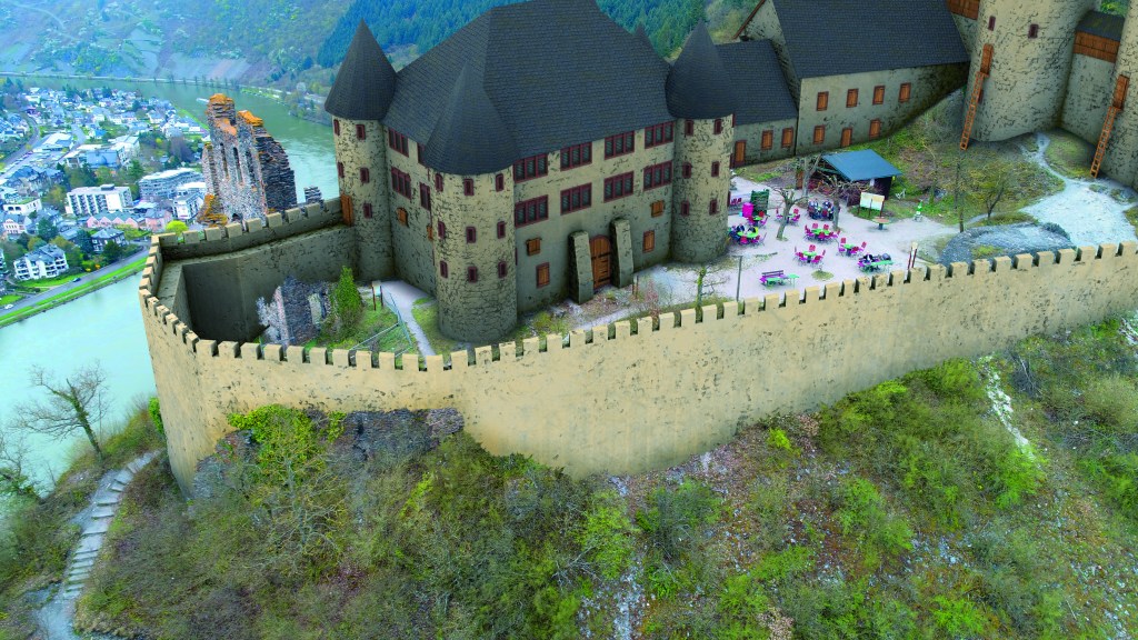 So wird neben dem romantischen Live-Blick auf die Ruine und dem analogen Blick durchs Panorama-Fenster digital eine umfassende Vorstellung der früheren Burg ermöglicht, von der heute nur noch ein kleiner Teil der Fassade steht. Völlige Sicherheit haben wir nicht, wenn es um die Frage geht, wie die Burg einst aussah. Die Rekonstruktionen, nach wissenschaftlichen Kriterien erstellt, können immer nur als Deutungen der Quellenlage angesehen werden.