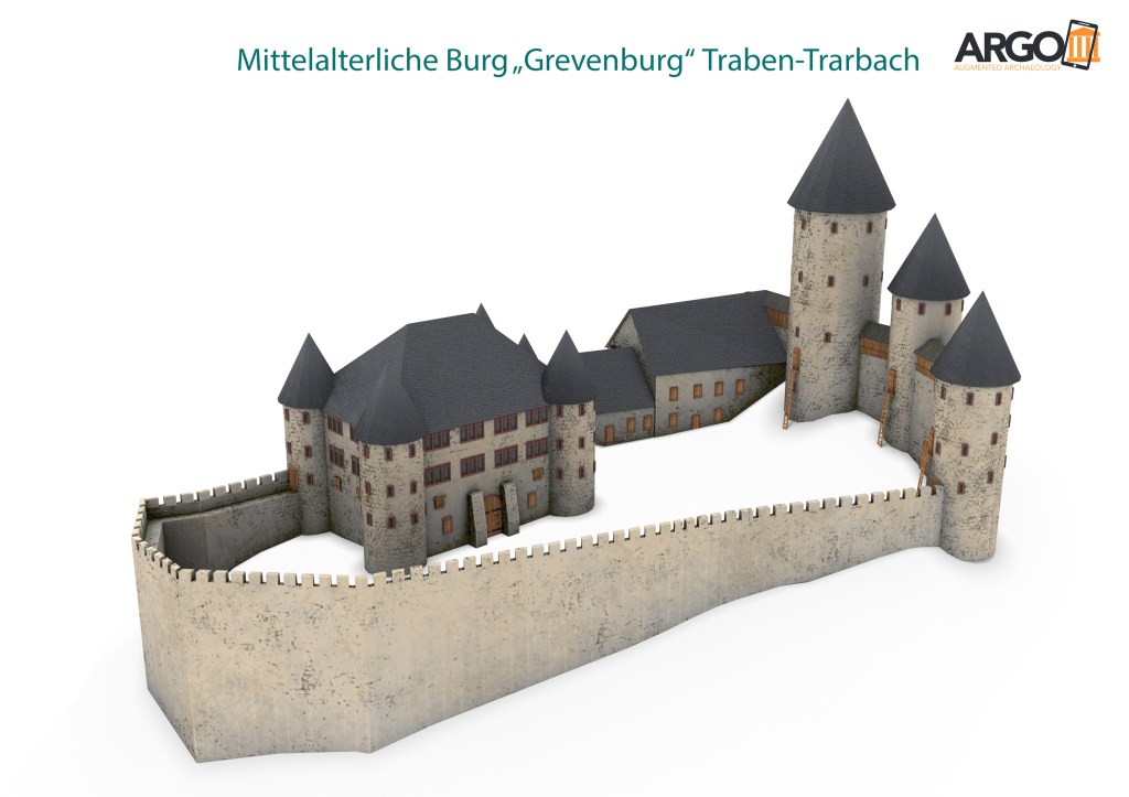 Wahrzeichen von Traben-Trarbach und zentrales Objekt zum Thema Mittelalter ist die Ruine der Grevenburg, die abseits der Altstadt auf einem der umgebenden Bergausläufer thront. Aufgrund der exponierten Lage soll die Burgruine nicht Station der Tour, wohl aber ein wichtiger thematischer Bezugsort werden. Um die Burg „ins rechte Licht zu rücken“, soll nahe der alten Lateinschule am Rande der Altstadt ein Aussichtspunkt entstehen. Von diesem erhöhten Standort aus hat man nämlich eine wunderbare Sicht auf die Burgruine.