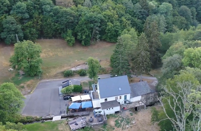 Einführende Drohnenaufnahmen von der Krackesmühle und ihre Anbindung an die Dhron aus dem Videoclip.