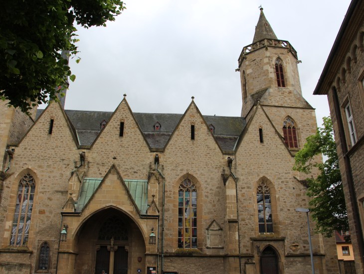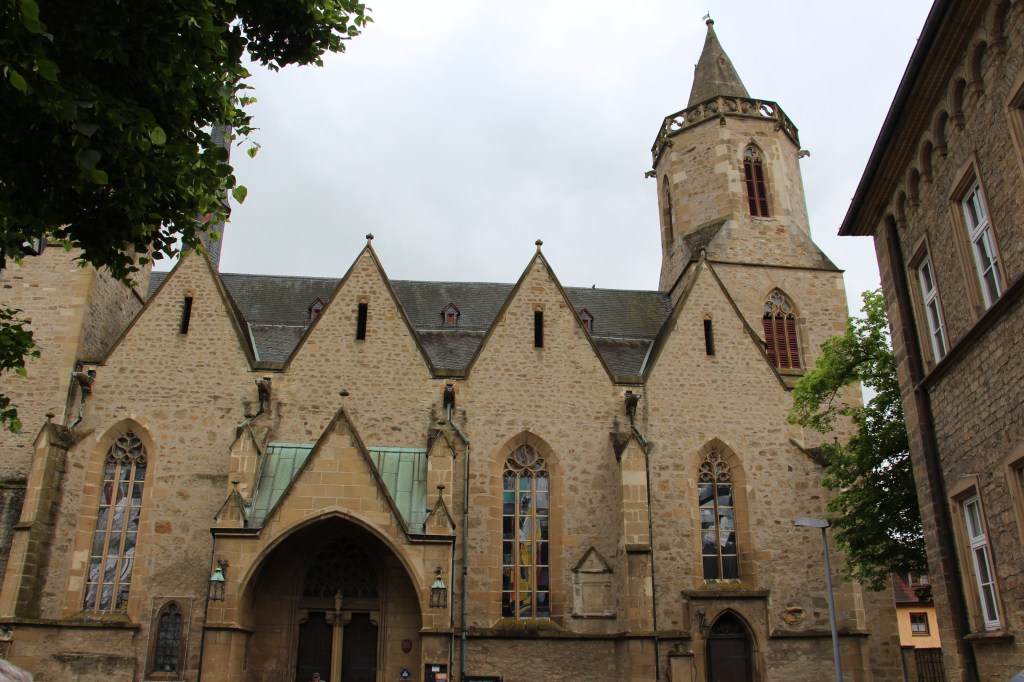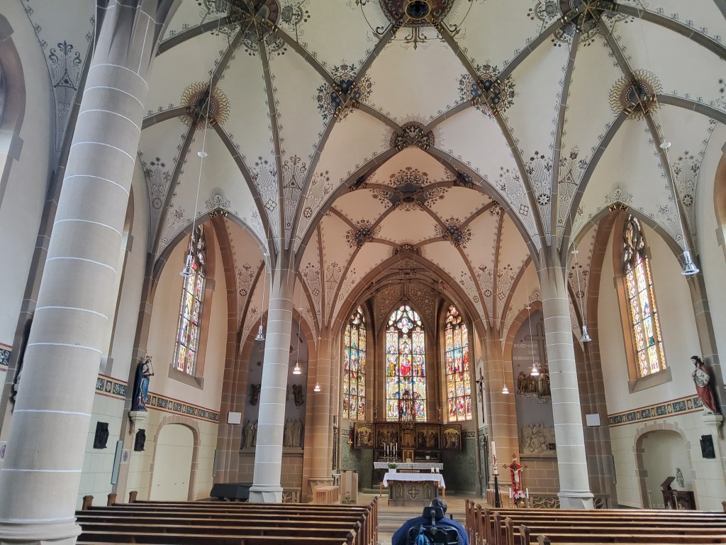 Aber auch die beiden größten und wichtigsten Gotteshäuser der Stadt, die katholische Kirche Sankt Matthäus und die evangelische Matthiaskirche, haben aufgrund der Vielzahl ihrer Objekte fast musealen Charakter. Aus diesem Grund wurden die beiden Hauptkirchen im Ort in 360-Grad-Wissensorte umgewandelt, in denen sich die Nutzer:innen interaktiv durch die virtuellen Kirchenräume bewegen und an ausgewählten Objekten Informationen abrufen können. An unserem Objekt des Monats, der Matthiaskirche, wurde nun eine 360-Grad-Tour verfügbar gemacht und mit Informationen angereichert. Welcher Blick wurde einst den von der Gemeinde abgegrenzt sitzenden Beginen auf das Geschehen am Altar gewährt? Welche Geschichten erzählen die Skulpturen und Reliefs des Bildhauers Willi Hahn oder die bunten Kirchenfenster von Georg Meistermann? Welche Schicksale verbergen sich hinter den steinernen Epitaphen und Grabplatten in der Nähe des Chors und welche Symbole lassen sich in den Schlusssteinen im Kirchengewölbe entdecken? Zu diesen und weiteren Fragen findet man nun Informationen im interaktiven, virtuellen Kirchenraum, weitere Medien und Informationen werden in Zukunft noch an den passenden Stellen verortet.