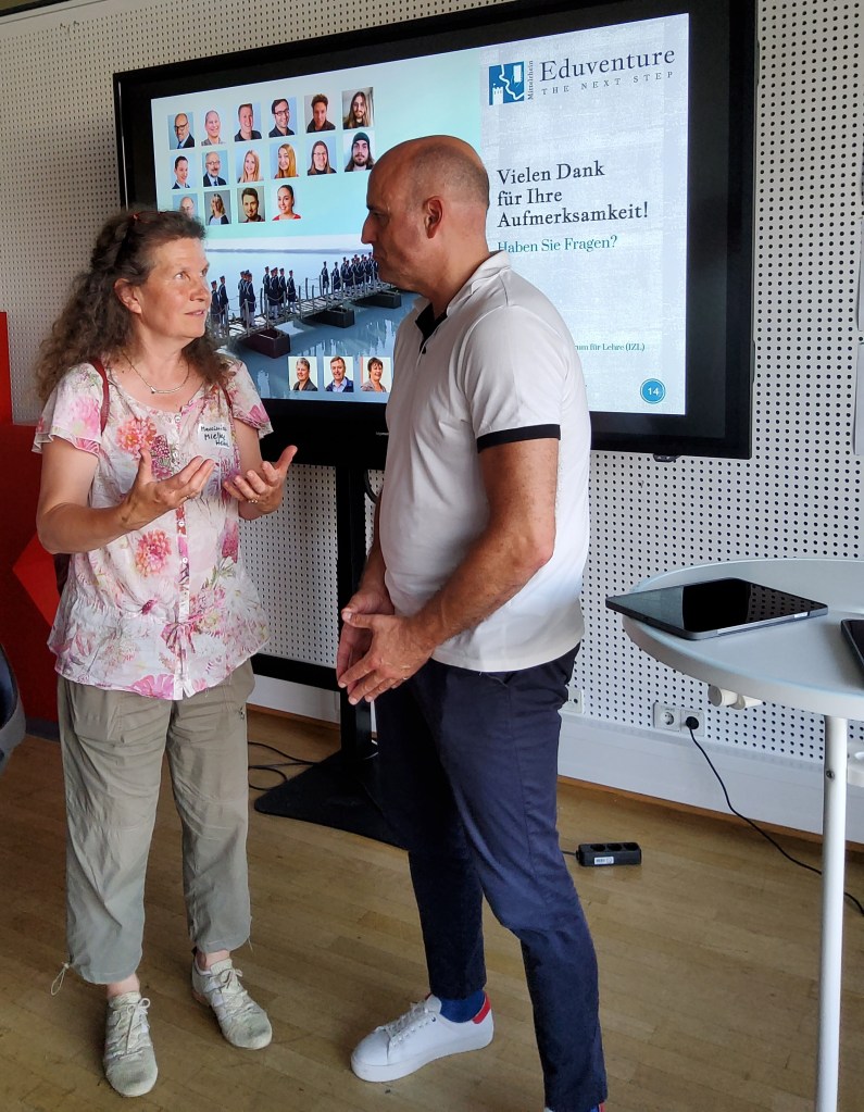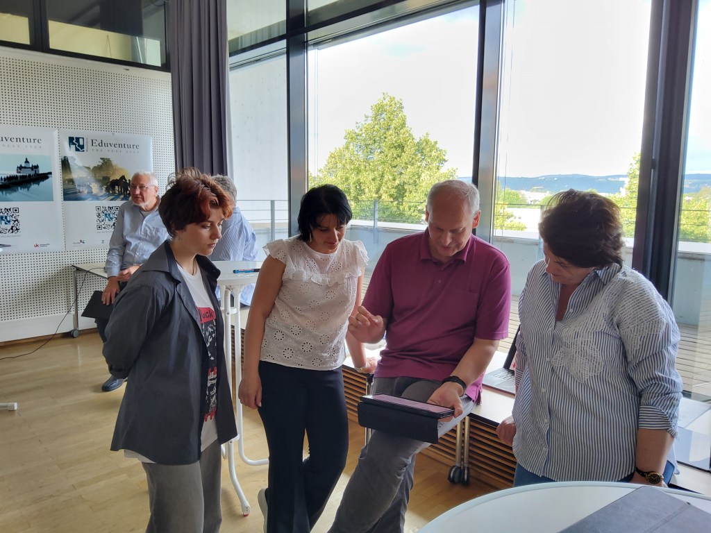 Informationen aus erster Hand: Dr. Peter Ferdinand vom Interdisziplinären Zentrum für Lehre gab Einblicke ins Eduventure; Michael Klemm stellte KuLaDig-RLP vor – unter anderem den Kolleginnen von der Yerevan State University in Armenien, mit denen ein Lehrprojekt zum kulturellen Erbe Jerewans vorbereitet wird.