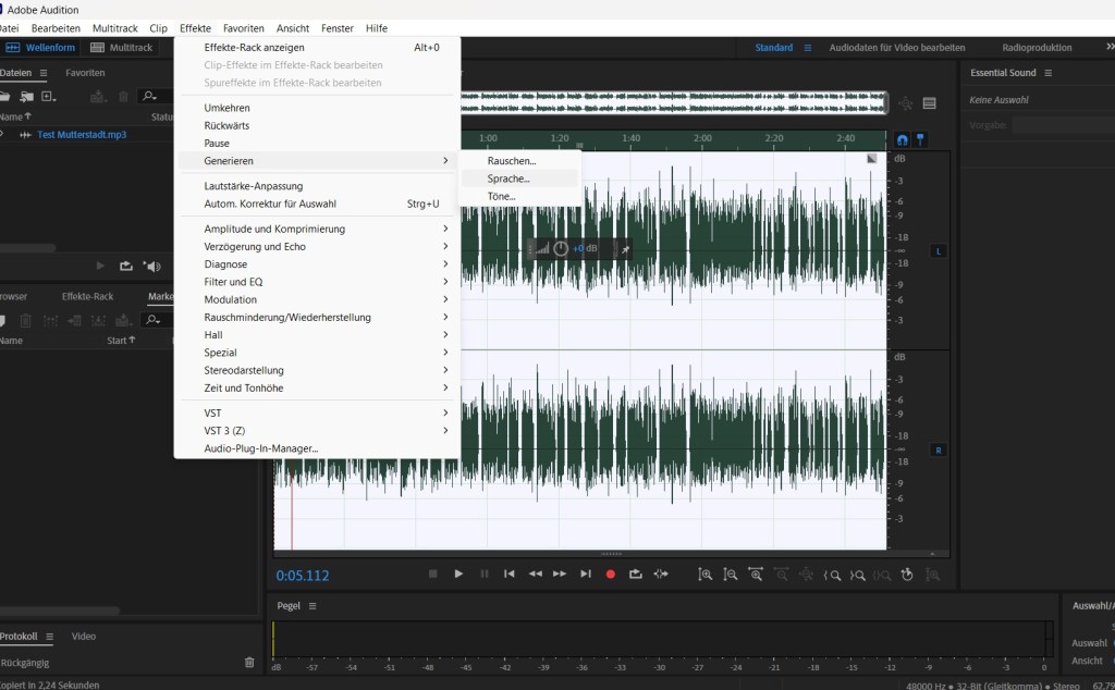 Blick in die Bearbeitungsmaske von Adobe Auditions