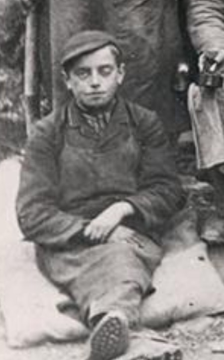 Bilddetail des Arbeiterjungens am linken Bildrand (Bildarchiv Kauber Schiefer e.V.).