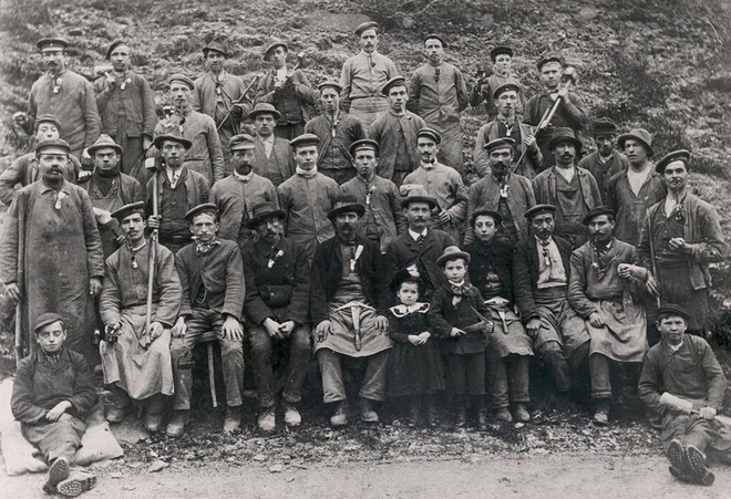 Ein paar Jahre Alter nur liegen zwischen ihnen und dennoch trennt sie Welten. Die Rede ist von den Kindern und Jugendlichen, die auf dem Gruppenfoto der Belegschaft des Rennseiterstollens, einem der Kauber Stollenanlagen im Dachschieferbergbau, zu sehen sind. Gemacht wurde diese Fotografie um das Jahr 1900 und es zeigt 37 Personen. Rechts und links am Rand sitzen zwei Jungs im geschätzten Alter von 14 Jahren. Sie zeugen davon, dass um die Jahrhundertwende viele Jugendliche aus ärmeren Verhältnissen direkt mit Beendigung der Schule, sprich mit 14 Jahren, ins Bergwerk gehen mussten, um für ihre Familien ein wenig dazuzuverdienen.