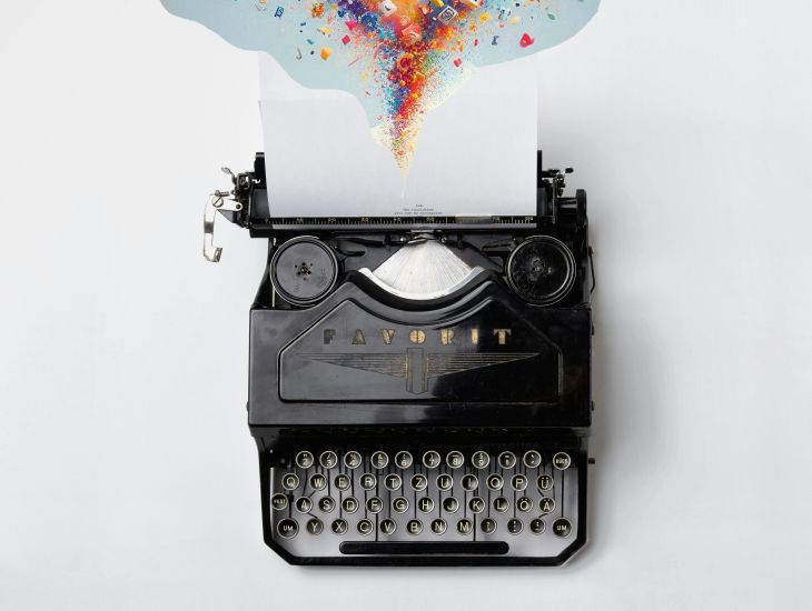 (Titelbild: Schreibmaschine von Florian Klauer / Unsplash, Buchstaben KI generiert mit Bing.com, Prompts und Collage: Florian Weber)
