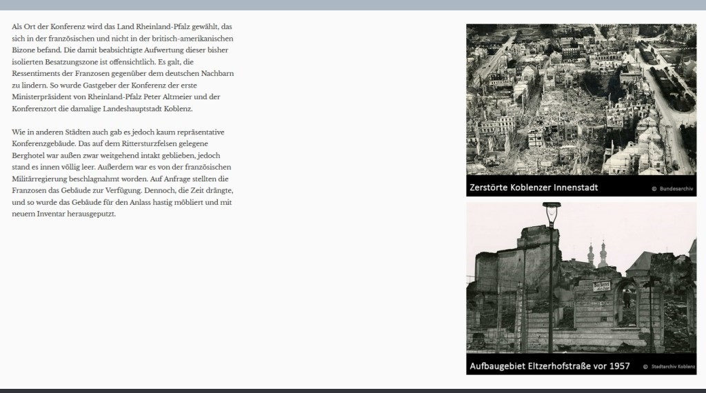 In Maikammer (Teilprojekt 2019) entstand 2020 eine Webseite, mithilfe derer ein Multimedia-Überblick über die Industriegeschichte der Ortsgemeinde gewonnen werden konnte. Die komprimierten Textabschnitte sind im Wechsel mit Bildergalerien und Audiodateien angeordnet und können nach dem Scrollytelling-Prinzip – das heißt eine multimediale Geschichte durch Herunterscrollen einer Seite entfalten – erschlossen werden. 2023 erstellte unter unserer Beteiligung der Koblenzer Medienwissenschaftler Stefan Meier zum 75jährigen Jubiläum der Rittersturzkonferenz die Scrollytelling-Seite „Rittersturzkonferenz – Ein Provisorium aus Koblenz mit Erfolgsgeschichte für Deutschland“. Auf dieser Seite wird auf anschauliche Weise der langwierige und komplizierte Prozess hin zu unserer Verfassung beleuchtet und mit verschiedenen Multimedia-Elementen in Form einer lebendigen Geschichtsvermittlung aufbereitet.