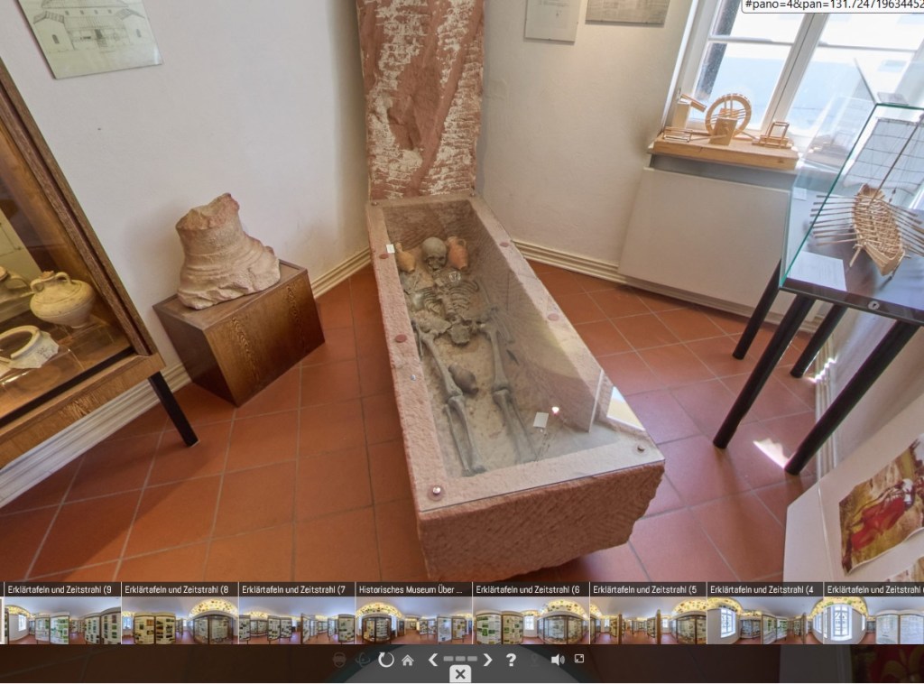 In einem nächsten Schritt geht es nun darum, diesen virtuellen Raum mit Informationen anzufüllen, beispielsweise zum Skelett eines unbekannten Römers, das in der Umgebung gefunden wurde. Sicher finden auch die im Teilprojekt in Studierendenbeteiligung gedrehten Videoclips, beispielsweise mit Zeitzeug:innen zur Reichspogromnacht, in dieser Umsetzung Verwendung.