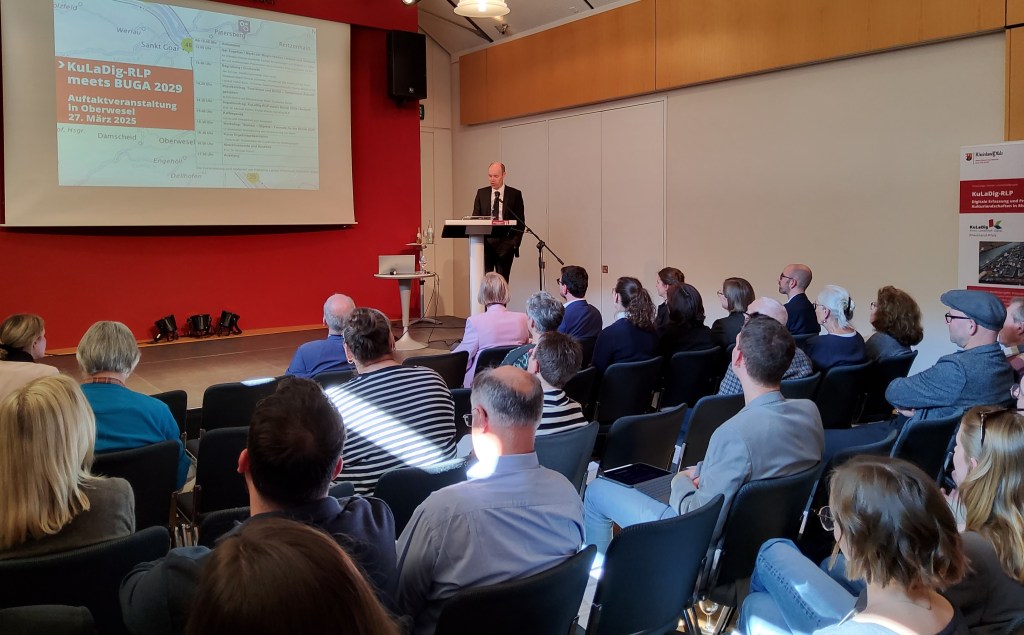 „Mit ‚KuLaDig RLP meets BUGA 2029‘ schaffen wir eine digitale Brücke zwischen Vergangenheit und Zukunft – wir machen die reiche Kulturlandschaft des Oberen Mittelrheintals sichtbar, erlebbar und nachhaltig zugänglich. So wird das kulturelle Erbe nicht nur bewahrt, sondern auch aktiv in die Gestaltung der BUGA 2029 eingebunden.“ Mit diesen Worten eröffnete Staatssekretärin Simone Schneider (MdI) die Auftaktveranstaltung „KuLaDig-RLP meets BUGA 2029“, die das Landesprojekt gemeinsam mit dem KuLaDig-Kompetenzzentrum am letzten Donnerstag im Kulturhaus in Oberwesel ausgerichtet hat.