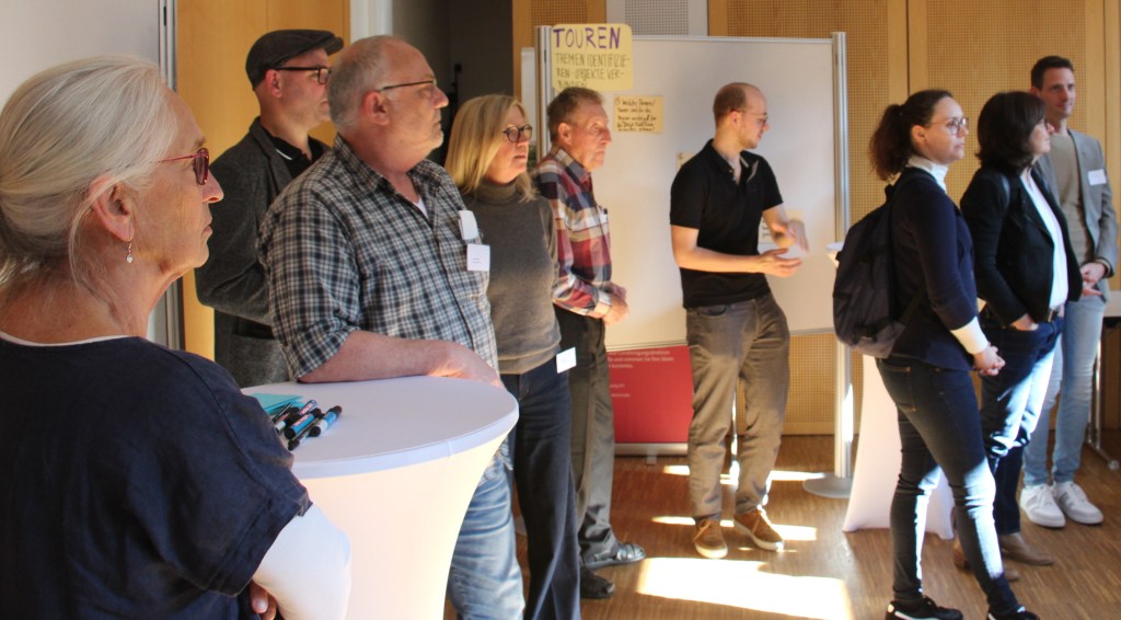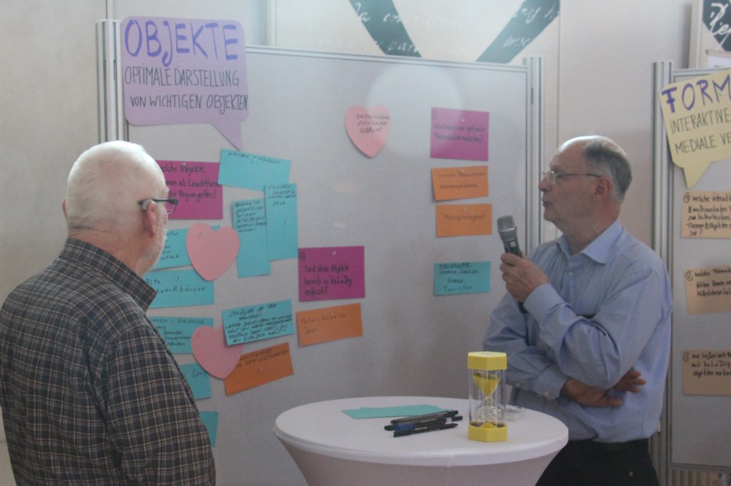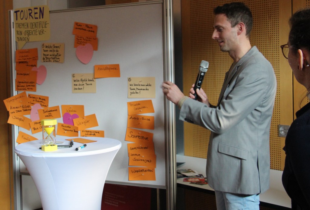Erstaunlich, wie viele Anregungen und spannenden Ideen in rund 90 Minuten Workshop zusammenkamen – und alle wurden vom Projektteam dokumentiert. Die Ergebnisse der Gruppenarbeit werden nun im Anschluss an die Veranstaltung ausgewertet und fließen in Folgeveranstaltungen ein. Denn darin waren sich alle Teilnehmenden einig: Der Auftakt ist gemacht und rundum gelungen, aber es liegt nun viel Arbeit vor allen Beteiligten, um die vielen Ideen zu strukturieren und zu konkretisieren, die Akteure zusammenzubringen und Schritt für Schritt die digitale Präsentation des kulturellen Erbes im BUGA-Gebiet zu realisieren.