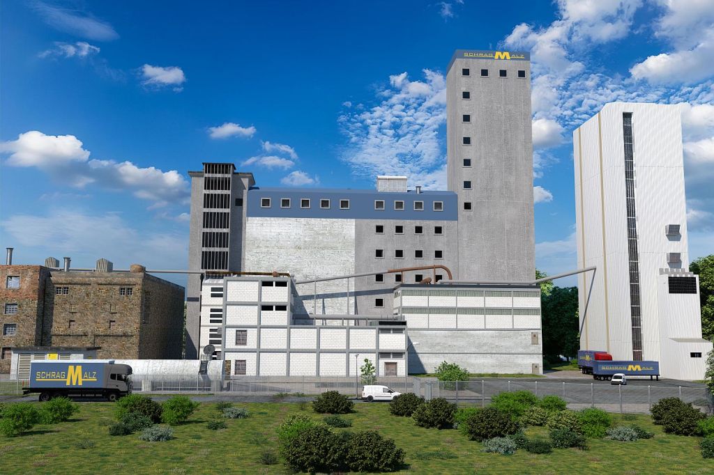 Im letzten Jahr setzte Peter Wild für uns in Römerberg eine weitere Rekonstruktion um, die ehemalige Malzfabrik Schragmalz, die von der Mitte des 19. Jahrhunderts bis 1991 im Ortsteil Berghausen bestand und den Ortskern geradezu dominierte. Der Standort des 60 Meter hohen Kolosses des Malzturms kann in Kürze durch eine Glasscheibe vor Ort mit der jetzigen Bebauung verglichen werden.