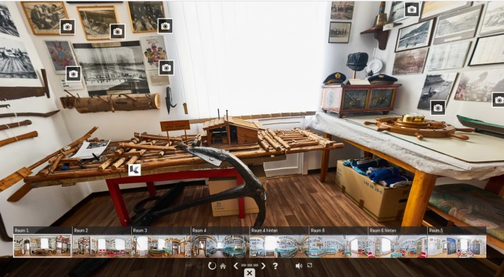 Blick in den virtuellen 360-Grad-Raum des Flößer- und Schiffermuseums im Rathaus Kamp-Bornhofen.