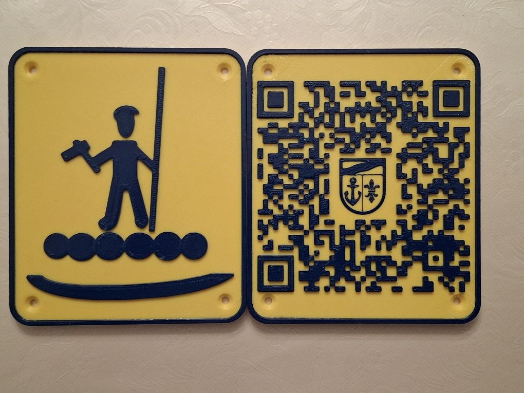 Beispiel für eins der 3D-Druckplaketten, mittels derer die Stationen in Kamp-Bornhofen gekennzeichnet sind.