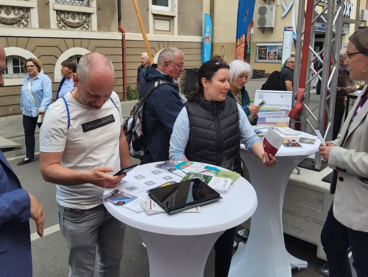 Viele Bürger:innen ließen sich an den drei Tagen über KuLaDig-RLP informieren und probierten die unterschiedlichen Formate gleich mal am Stand aus.