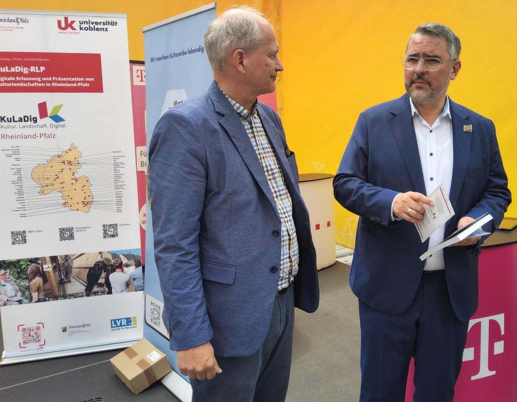 Auch die Politik kam am Stand vorbei. Ob Innenminister Michael Ebling, Staatssekretärin Simone Schneider oder Neustadts Oberbürgermeister Marc Weigel – alle ließen sich über den aktuellen Stand der Projekte informieren. Am Sonntag besuchte dann auch Ministerpräsident Alexander Schweitzer die Koordinatorin von KuLaDig in Rheinland-Pfalz, Christine Brehm.