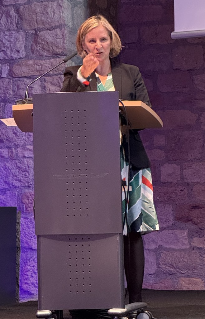 Dass hatte den Vorteil, dass die Sichtbarkeit der KuLaDig-Projekte in Rheinland-Pfalz nochmal gesteigert wurde und auch Ehrengäste wie die Staatsministerin im Umweltministerium Katrin Eder, Dr. Matthias Frey, Staatssekretär im Justizministerium sowie der ehemalige Ministerpräsident Kurt Beck und viele weitere an der feierlichen Auszeichnung von 13 Kommunen teilnahmen, die sich in ihrem Engagement in der Arbeit mit KuLaDig 2024 besonders verdient gemacht haben. Staatssekretärin Schneider zeichnete in Vertretung für Innenminister Michael Ebling die acht KuLaDig-RLP-Modellkommunen des Projektjahres 2024 aus (Bacharach, Bundenbach, Herxheim, Mutterstadt, Oberkail, Römerberg, Ruwer und Sinzig / Bad Neuenahr-Ahrweiler) sowie die vier durch das KuLaDig-Kompetenzzentrum unterstützten Kommunen Billigheim-Ingenheim, Großfischlingen, Niederschlettenbach und Welschneudorf.
