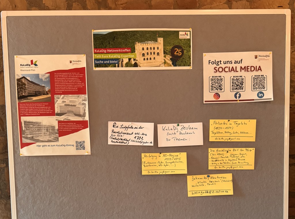 Über 200 Besucherinnen und Besucher waren in diesem Jahr gekommen, was gegenüber den bisherigen Netzwerktreffen – das erste fand 2022 auf Burg Lichtenberg bei Kusel statt, gefolgt vom Treffen 2023 in der Sayner Hütte und 2024 in Schloss Malberg – nochmals eine Steigerung in der Zahl der Teilnehmenden und Ausstellenden darstellt. Da das KuLaDig Kompetenzzentrum RLP mit Christine Brehm und ihrem Team das Netzwerktreffen veranstaltet und zur SGD Süd gehört, wurde in diesem Jahr das Treffen mit einem Festakt zum 25. Jubiläum der Behörde verbunden.