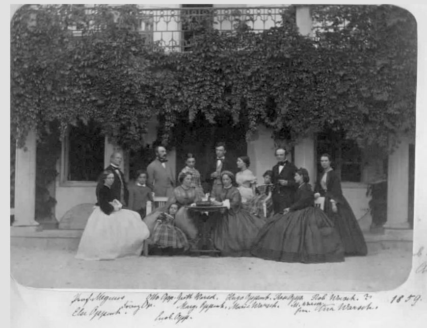 Um auf diese Szene weiter aufzubauen, auch um ein späteres Zusammenfügen der einzelnen Sequenzen zu ermöglichen, haben wir Prompts für eine neue Szene aus dem Park der Mendelssohns in Horchheim erstellt. Im Hinterkopf hatten wir historische Bilder der Familie Mendelssohn-Bartholdy, die vor ihrem Teehaus in ihrem Park in Horchheim versammelt sind.