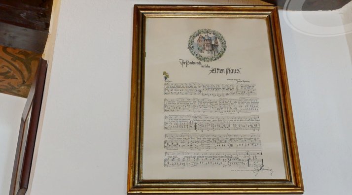 Das Lied zum Alten Haus hängt im Gastronomiebereich im Erdgeschoss (Bilder: Büro viriditas)