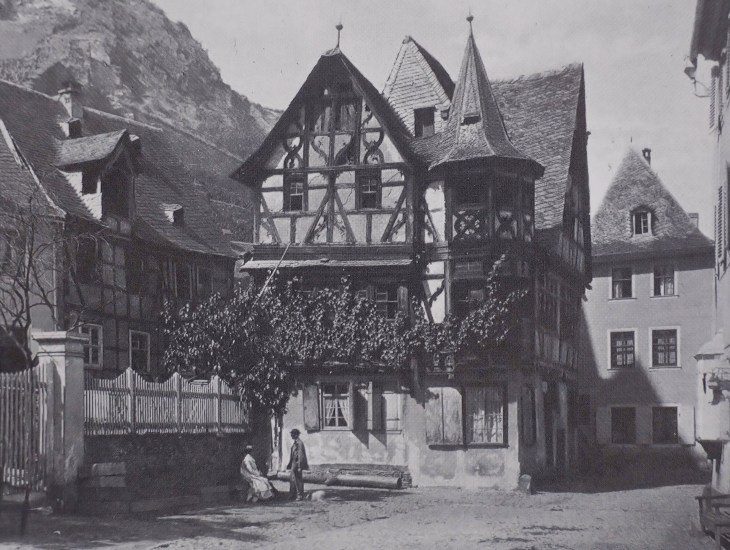 Mit diesen Worten beschreibt Thomas Merz, ein ausgewiesener Kenner des Welterbes Oberes Mittelrheintal, das eindrucksvolle Fachwerkhaus in der Oberstraße 61 in Bacharach, unser Objekt des Monats November. Ein Schild neben der alten Holztüre verrät, dass der Komponist Robert Stolz (1880-1975) nach einer weinfreudigen Nacht im Kreise seiner Freunde hier zu seiner Operette „Wenn die kleinen Veilchen blühn“ inspiriert wurde. Eine Theaterkulisse, angeglichen an das Alte Haus, wurde geschaffen und tourte im Rahmen der Operetten-Aufführungen durch verschiedene deutsche und internationale Theater. Dies verhalf dazu, dass das Gebäude zu einer Bacharacher Sehenswürdigkeit von überregionaler Bekanntheit avancierte.