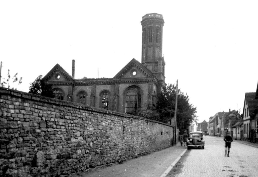 „Der Turm der evangelischen Kirche brannte lichterloh. Den Schlüssel hatte der Kirchendiener vorsichtshalber zum Bauern Bohlender neben der Kirche gebracht, aber die hatte es selbst schwer getroffen, keiner hatte Zeit nach der Kirche zu sehen. So konnte sich der Brand ungehindert ausbreiten. Die Wirtschaft zum Pfälzer Hof in der Schwegenheimer Straße gab es nicht mehr. Die evangelische Kirche war eine gespenstische Ruine.“