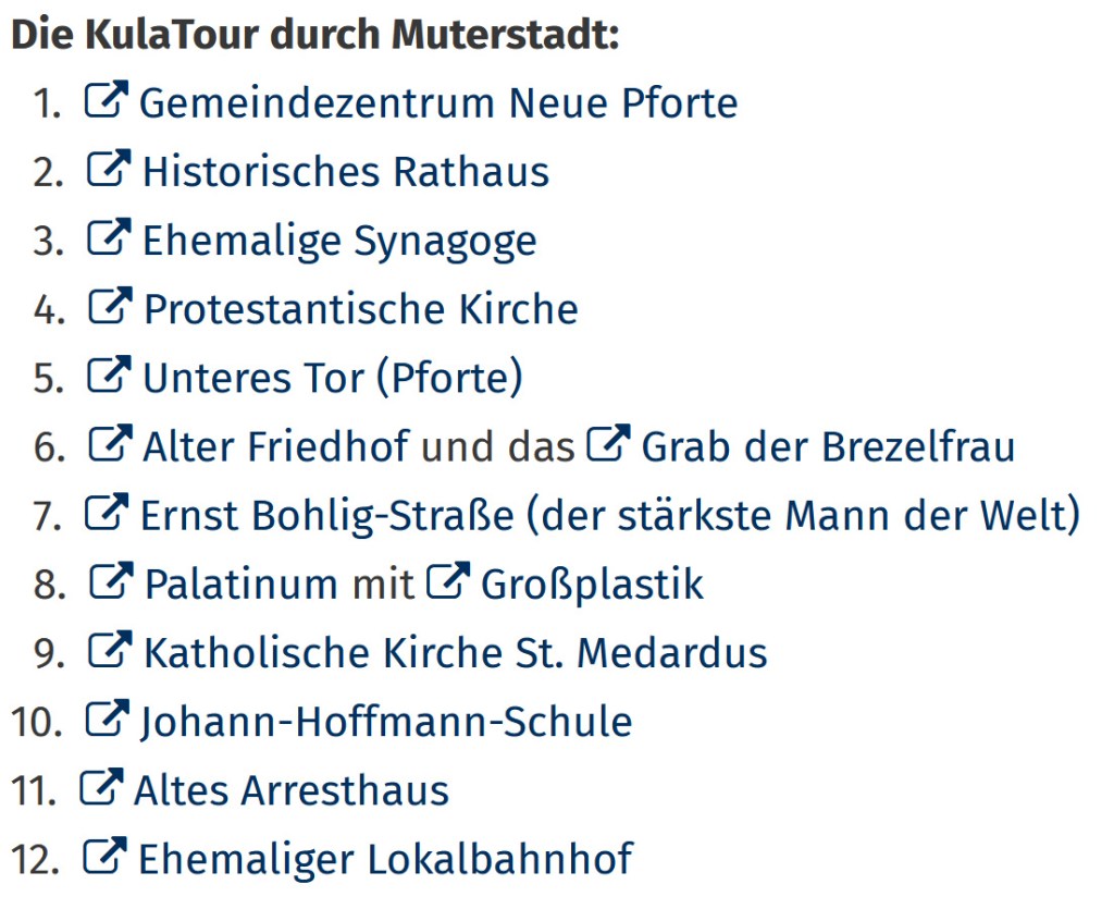 Das Teilprojekt Mutterstadt und die daraus entstandene KuLaTour machen deutlich, wie wichtig die flexible und unkomplizierte Verbindung von KuLaDig zu anderen Anwendungen, beispielsweise den virtuellen 360-Grad-Räumen, ist, um nutzerfreundliche und agil-intuitive Wissensvermittlungsformate für ganz unterschiedliche Bedarfe und Zielgruppen zu gestalten. Derart anschaulich und leicht auffindbar „auf die Straße gebracht“ sind die im Landesprojekt gestalteten Informationen und Medien von unmittelbarem Nutzen für Einheimische wie Gäste.