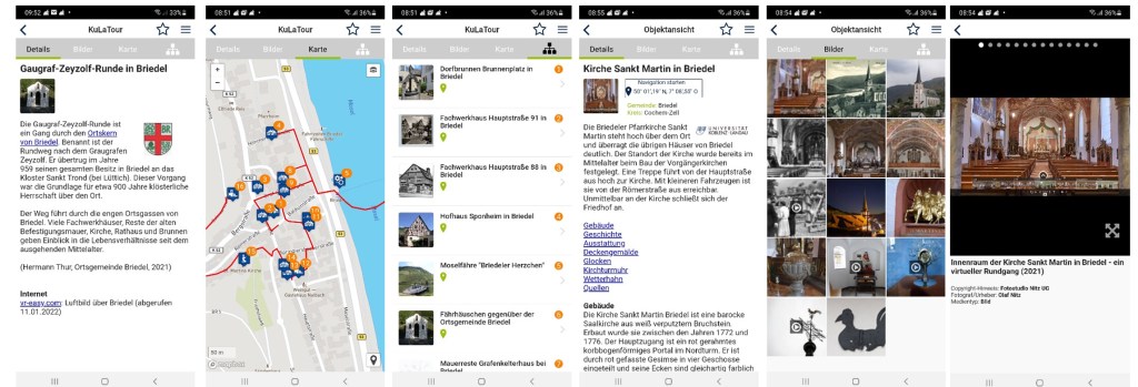 Mit KuLaTouren kann man Objekte in der App zu Rundgängen oder -fahrten verbinden.