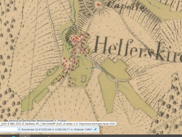 Die Tranchot-von Müffling-Karte von 1810, hier zur Modellkommune Helferskirchen im Westerwald