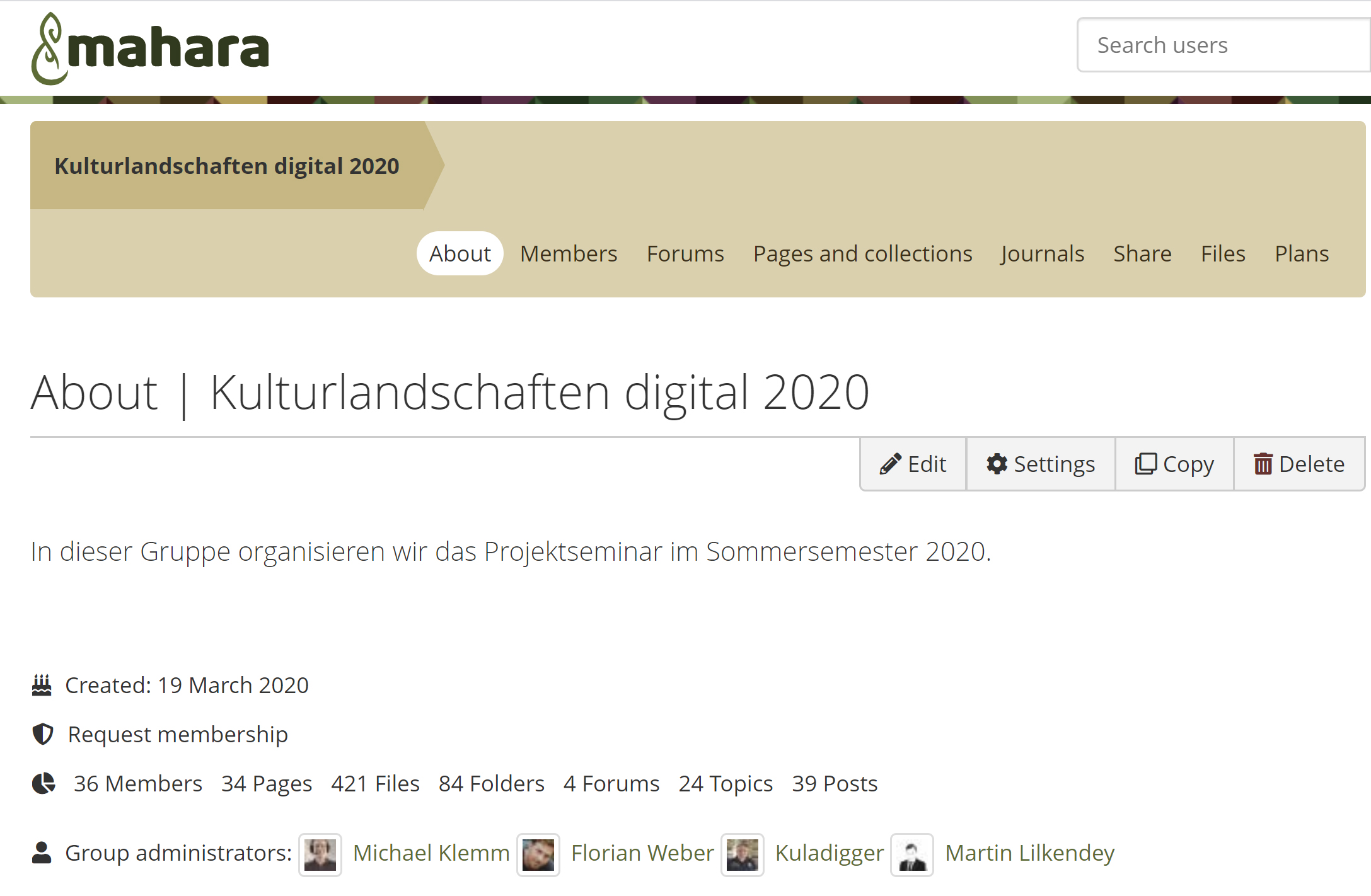 Auf der Online-Plattform Mahara wird das Projektseminar organisiert.